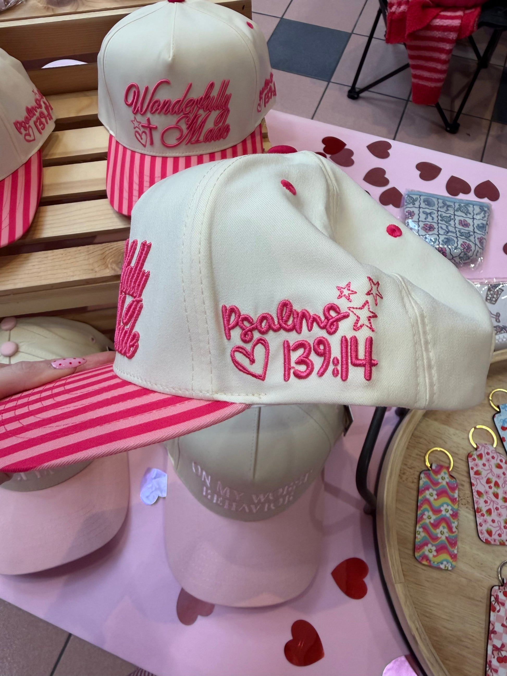 The cutest embroidered trucker hats! Psalms 139:14 is also embroidered on the side.